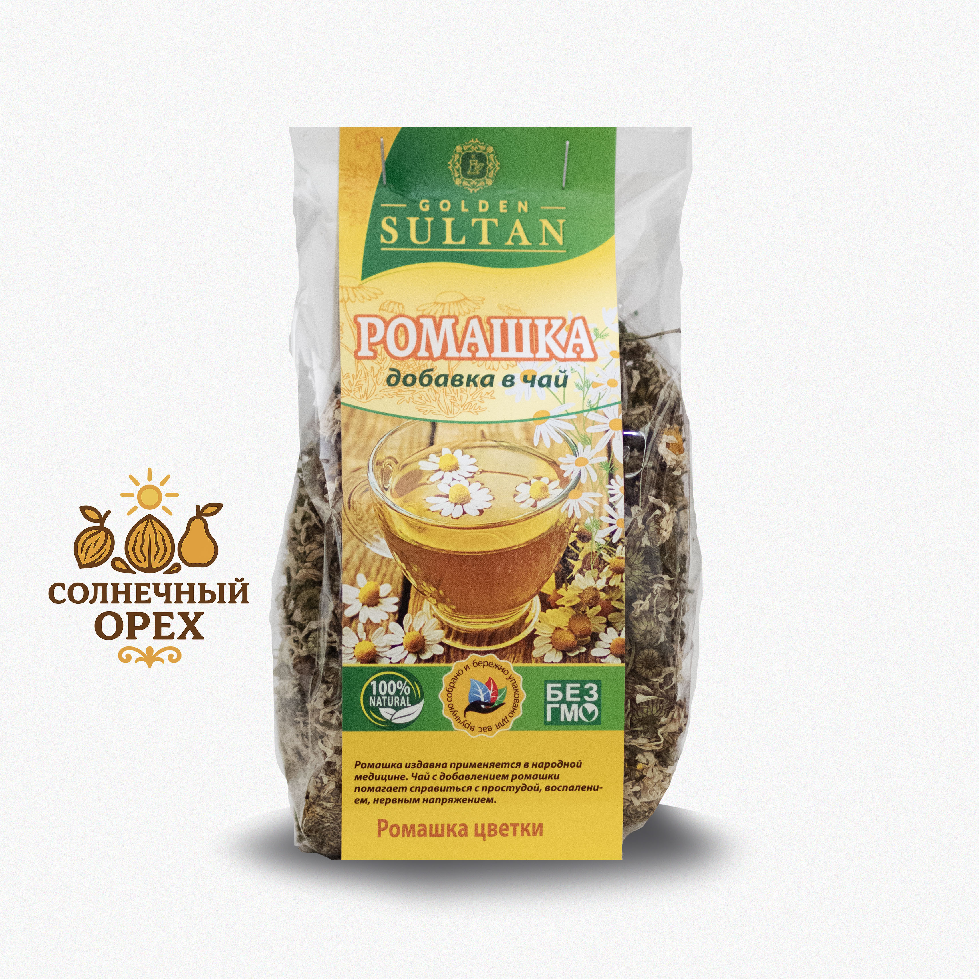 Чай Golden Sultan "Ромашка" – это источник здоровья и спокойствия. Натуральные цветки ромашки обладают мягким успокаивающим действием, снимают напряжение после напряженного дня и укрепляют иммунитет. При регулярном употреблении вы почувствуете прилив сил и улучшение общего самочувствия. Нейтральный вкус с нежными цветочными нотками делает этот чай универсальным напитком как для повседневного употребления, так и праздничных мероприятий. Удобная упаковка сохраняет свежесть и аромат продукта.
