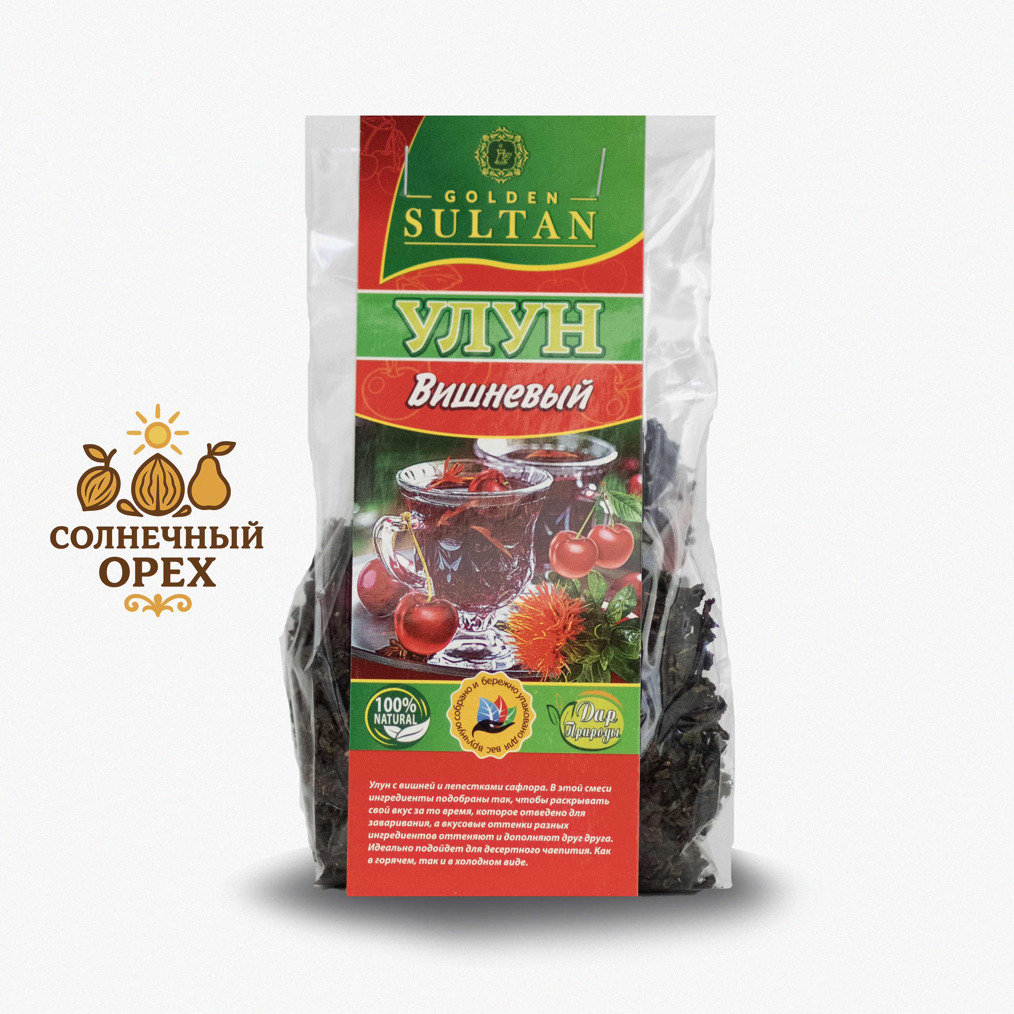 Чай Golden Sultan "Вишневый улун" – изысканный напиток премиум-класса с насыщенным ароматом спелой вишни и нежным вкусом традиционного улуна. Уникальное сочетание вкусов помогает расслабиться после напряженного дня, насладиться приятным моментом отдыха или дружеской беседы. Натуральный продукт без искусственных добавок укрепляет здоровье, улучшает обмен веществ и повышает общий тонус организма. Упаковка чая стильная и компактная, идеально подходит как для личного использования так и в качестве презента.