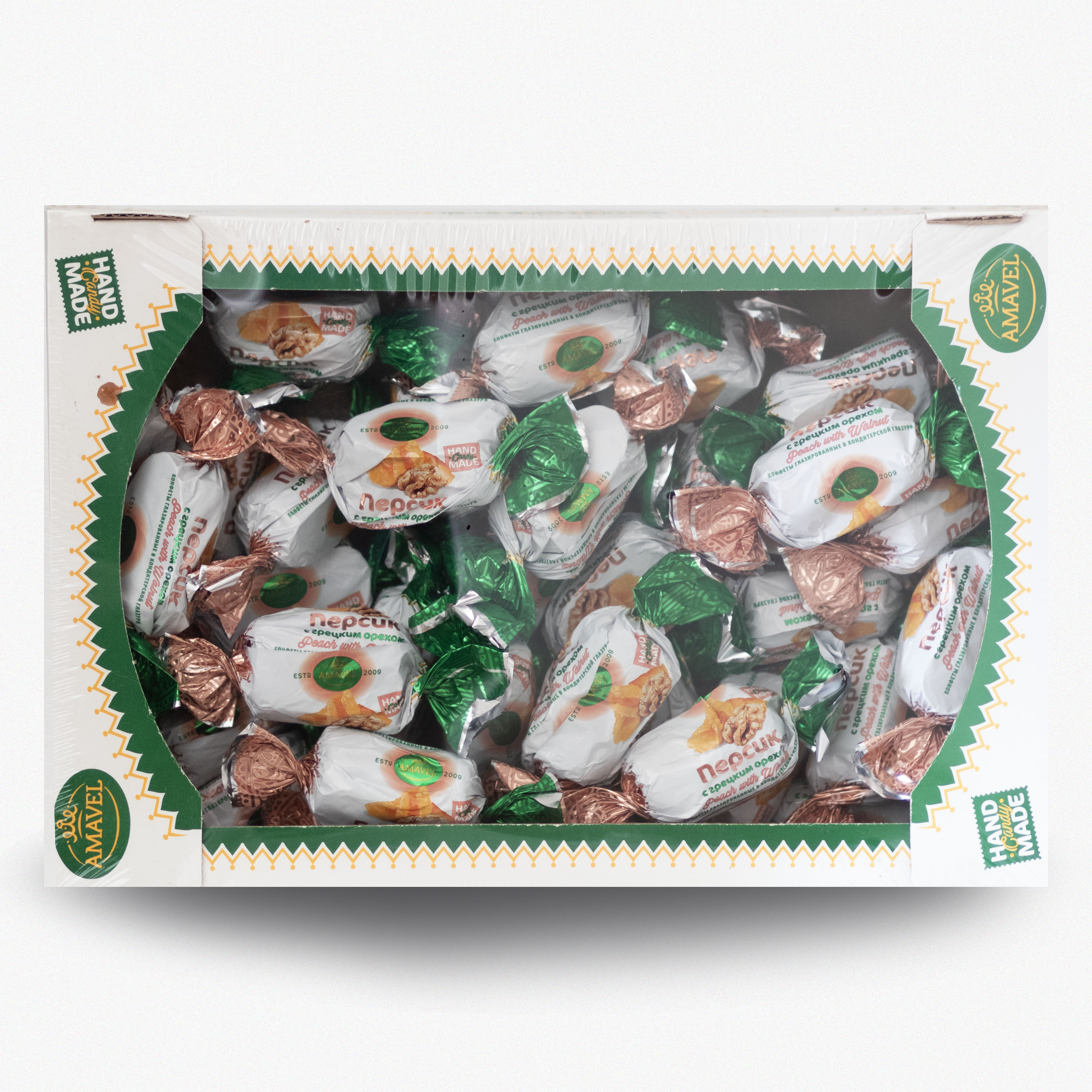 Нежные конфеты «Персик с грецким орехом» — это изысканное сочетание сладкого фруктового пюре и хрустящего ореха. Вкусное лакомство порадует вас ярким ароматом персика, польза которого дополнена ценными веществами грецкого ореха. Идеальный подарок себе или близким, натуральный десерт к чаю или кофе без лишних калорий и искусственных добавок. Приятное послевкусие гарантировано!